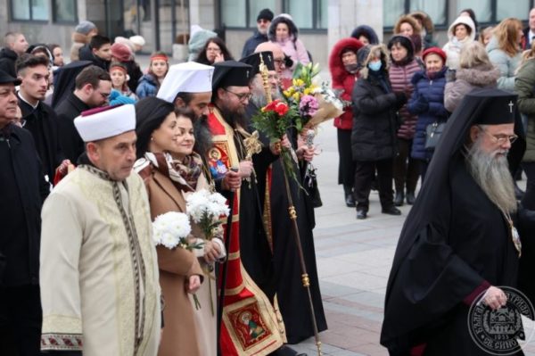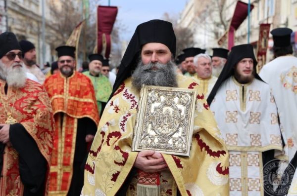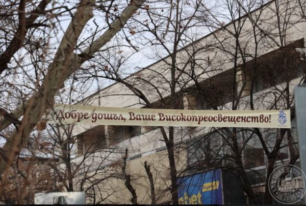 Ο Σεβασμιώτατος συνοδευόταν από τονΜητροπολίτη Βράτσης κ. Γρηγόριο, και τον Επίσκοπο Μελενίκου κ. Γεράσιμο.