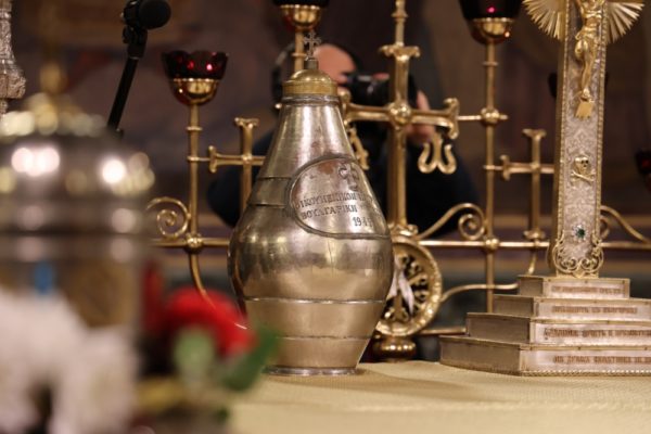 “Σύμφωνα με τον Άγιο Συμεών Θεσσαλονίκης και άλλους Πατέρες και Διδασκάλους της Εκκλησίας, το Άγιο Μύρο συμβολίζει επίσης τον πλούτο των δωρεών του Πανάγιου Πνεύματος, που ο Θεός γενναιόδωρα διαχέει πάνω μας” ανέφερε μεταξύ άλλων ο Μακαριώτατος.