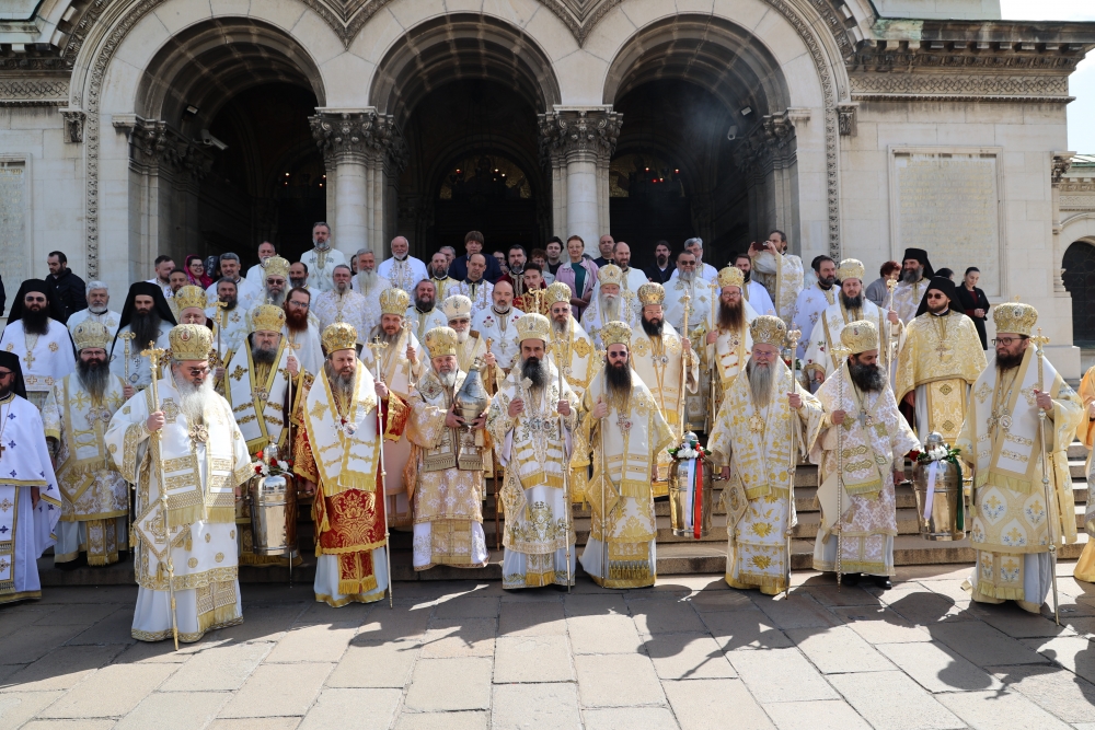 Με τον Μακαριώτατο συλλειτούργησαν οι Σεβασμιώτατοι Μητροπολίτες Αμερικής, Καναδά και Αυστραλίας κ. Ιωσήφ, Μεγάλου Τυρνόβου κ. Γρηγόριος, Λόβετς κ. Γαβριήλ, Φιλιππουπόλεως κ. Νικόλαος, Βάρνας και Μεγάλης Πρεσλάβας κ. Ιωάννης, Νευροκοπίου κ. Σεραφείμ, Στάρα Ζαγκόρας κ. Κυπριανός, Βράτσης κ. Γρηγόριος, Δοροστόλου κ. Ιάκωβος, Σλίβεν κ. Αρσένιος, Βιδινίου κ. Παχώμιος, καθώς και οι Θεοφιλέστατοι Επίσκοποι Σμόλιαν κ. Βησσαριών, Κωνσταντίνης κ. Μιχαήλ, Βελεβουσδίου κ. Ισαάκ και Ζνεπόλεως κ. Μελέτιος.