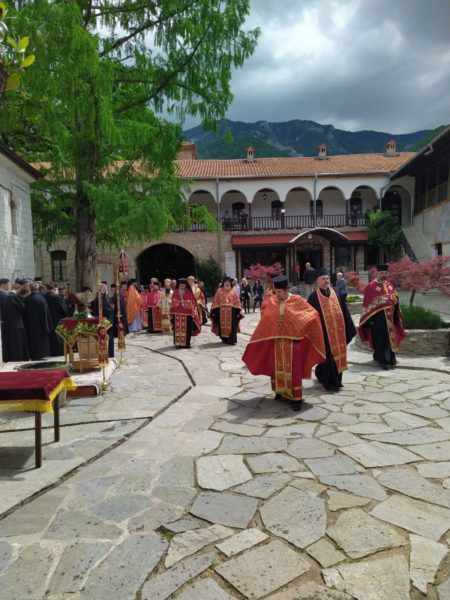 Η λιτάνευση έφθασε στην Ιερά Μονή του Μπάτσκοβο στις 11:30, όπου την υποδέχθηκε ο ηγούμενος, Θεοφιλέστατος Επίσκοπος Βελίκης κ. Σιώνιος. Εκεί τελέστηκε αγιασμός.