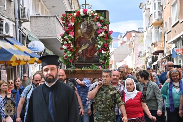 Μετά το πέρας της Θείας Λειτουργίας, έγινε η καθιερωμένη λιτανεία από τον Ιερό Ναό προς το Μοναστήρι του Μπάτσκοβο, με τα «χάλκινα» της Στρατιωτικής Φιλαρμονικής Ορχήστρας να παιανίζουν ύμνους έμπροσθεν. Ακολούθησαν οι στρατιωτικοί με την Θαυματουργή Εικόνα της Παναγίας του Ελέους, κληρικοί και πλήθος λαϊκών. Η πορεία πέρασε από τους κεντρικούς δρόμους της πόλης.