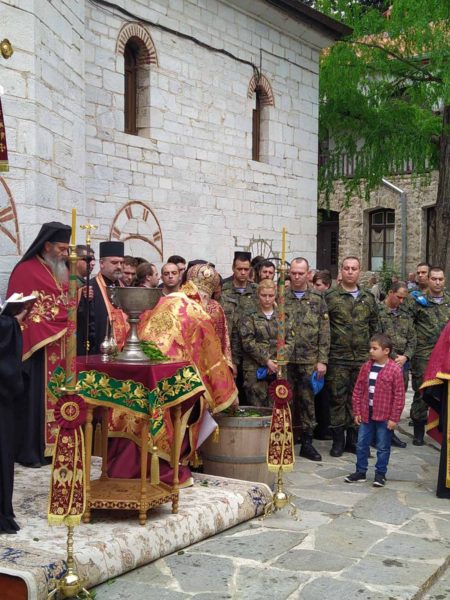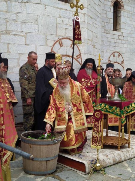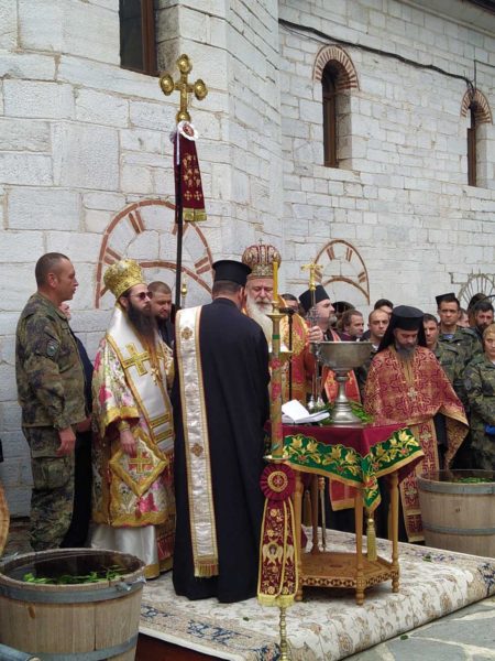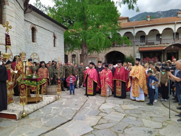 Μετά το πέρας της Θείας Λειτουργίας, έγινε η καθιερωμένη λιτανεία από τον Ιερό Ναό προς το Μοναστήρι του Μπάτσκοβο, με τα «χάλκινα» της Στρατιωτικής Φιλαρμονικής Ορχήστρας να παιανίζουν ύμνους έμπροσθεν. Ακολούθησαν οι στρατιωτικοί με την Θαυματουργή Εικόνα της Παναγίας του Ελέους, κληρικοί και πλήθος λαϊκών. Η πορεία πέρασε από τους κεντρικούς δρόμους της πόλης.