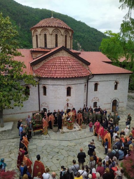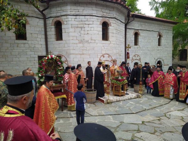 Η λιτάνευση έφθασε στην Ιερά Μονή του Μπάτσκοβο στις 11:30, όπου την υποδέχθηκε ο ηγούμενος, Θεοφιλέστατος Επίσκοπος Βελίκης κ. Σιώνιος. Εκεί τελέστηκε αγιασμός.