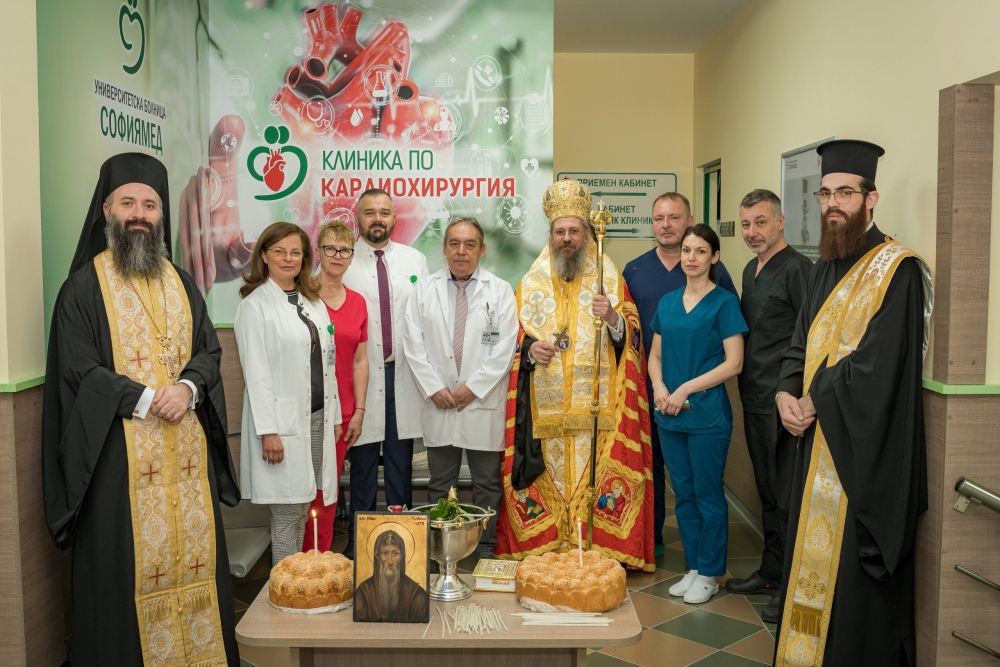 Με την ευλογία του Μητροπολίτη Φιλιππούπολης κ. Νικολάου, προέδρου του διοικητικού συμβουλίου του νοσοκομείου καθώς και με την ευλογία του Μητροπολίτη Βράτσης κ. Γρηγορίου, Αντιπροέδρου της Ιεράς Συνόδου, τελέστηκε η ακολουθία του Αγιασμού στο νέο Καρδιοχειρουργικό Τμήμα του Πανεπιστημιακού Γενικού Νοσοκομείου Ενεργητικής Θεραπείας “Sofiamed” από τον Επίσκοπο Μπελογκραντσίκ κ. Πολύκαρπο.