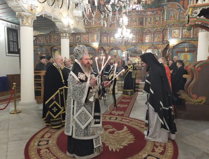 Ο Επίσκοπος Μπελογκρντσίκ κ. Πολύκαρπος, με την ευλογία του Πατριάρχη Βουλγαρίας κ.κ. Νεόφυτου τέλεσε την Προηγιασμένη Θεία Λειτουργία στον Ιερό Ναό Κοιμήσεως Θεοτόκου στην πόλη Κιουστεντίλ, στο δυτικό άκρο της Βουλγαρίας.