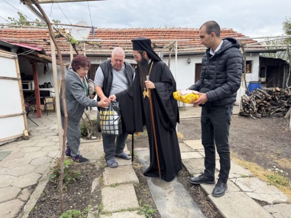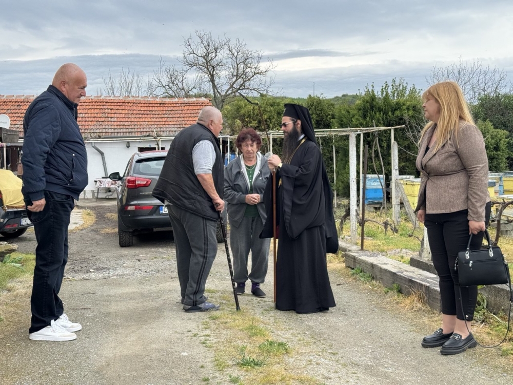 Μετά την τέλεση της Θείας Λειτουργίας στην ανακαινισμένη εκκλησία του χωριού, αφιερωμένη στον Άγιο Ιωάννη της Ρίλα, ο Σεβασμιώτατος, συνοδευόμενος από τη γραμματέα του γραφείου του δημάρχου, κα Γιόβκα Βελίτσκοβα, επισκέφθηκε τους ηλικιωμένους του χωριού, στους οποίους δώρισε εικόνες της Παναγίας, πασχαλινά γλυκά και δέματα με τρόφιμα.