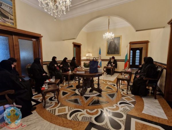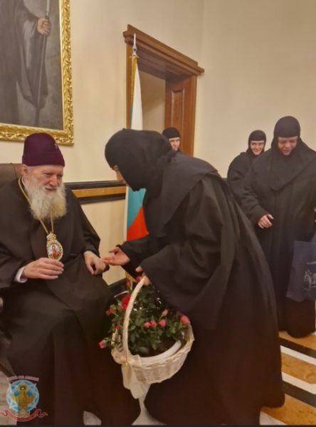 Οι μοναχές χάρισαν στον Προκαθήμενο της εν Βουλγαρία Ορθοδόξου Εκκλησίας μια εικόνα της Θεοτόκου. Από την πλευρά του, ο Μακαριώτατος ευλόγησε κάθε μία από τις αδελφές και τους προσέφερε μοναστηριακό κομποσκοίνι. Τους ευχήθηκε πνευματική δύναμη και να συνεχίσουν τη μοναστική διακονία.