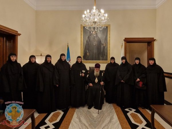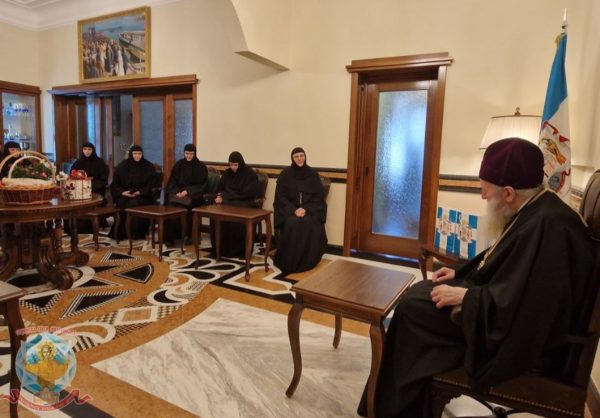 Η Ηγουμένη Ταΐσια σύστησε τις μοναχές στον Μακαριώτατο και αναφέρθηκε στο έργο που επιτελεί το μοναστήρι. Μίλησε για μια από τις κύριες ασχολίες τους – την αγιογραφία, καθώς και για τις ώρες που αφιερώνουν στην εκπαίδευση στην ψαλτική μουσική.