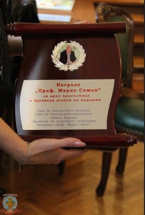 Το βραβείο καθιερώθηκε το 2007 από την Ένωση Βούλγαρων Δημοσιογράφων, την Ένωση Βούλγαρων Λογοτεχνών, την Ένωση για την Εθνική Διατήρηση, του Δήμου Απρίλτσι και το Ίδρυμα «Καθ. Μάρκο Σέμοφ». Φορείς του είναι ο ποιητής Νεντιάλκο Γιορντανόφ, ο ιστορικός καθηγητής Ντόινο Ντόινοφ, η ιδρύτρια του Κλασικού Λυκείου Γκεργκίνα Τόντσεβα, ο σκηνοθέτης ακαδημαϊκός Λιουνμίλ Στάικοφ και η Βουλγαρική Ακαδημία Επιστημών.