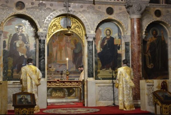 Χθες, λοιπόν, τελέστηκε η πανηγυρική Θεία Λειτουργία, στην οποία χοροστάτησε ο Επίσκοπος Μελενίκου κ. Γεράσιμος, Αρχιεγραμματεύς της Ιεράς Συνόδου και επικεφαλής του διοικητικού συμβουλίου του ναού.