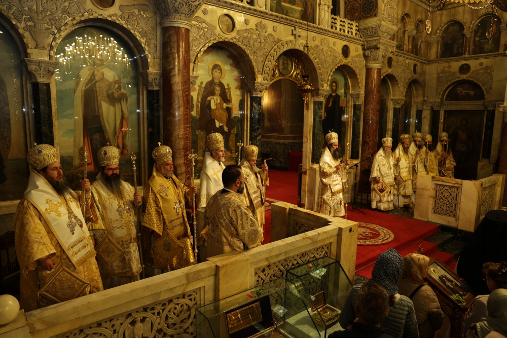 Τους εορταστικούς ύμνους απέδωσε η μικτή χορωδία του Καθεδρικού Ναού με χοράρχη τον Δρ Γκεόργκι Ελένκοφ.
