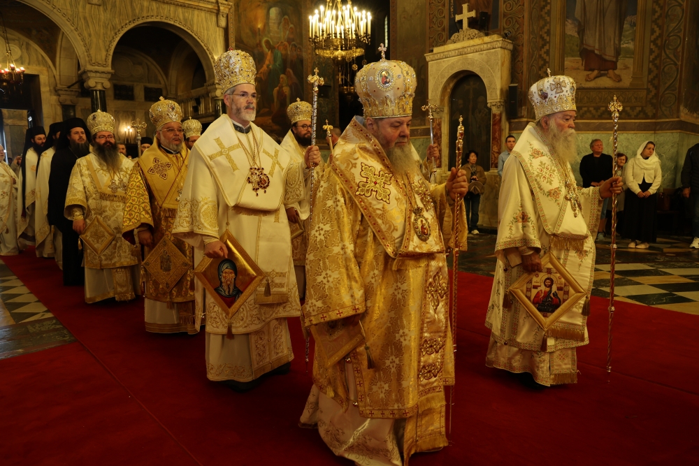 Στην Θεία Λειτουργία συλλειτούργησε ο Μακαριώτατος Πατριάρχης Βουλγαρίας κ.κ. Δανιήλ με τους Σεβασμιωτάτους Μητροπολίτες Μεγάλου Τυρνόβου κ. Γρηγόριο, Λόβετς κ. Γαβριήλ, Κεντρώας και Δυτικής Ευρώπης κ. Αντώνιο, Νευροκοπίου κ. Σεραφείμ, Στάρα Ζαγκόρας κ. Κυπριανό, Βιδινίου κ. Παχώμιο και τους Θεοφιλεστάτους Επισκόπους Μελενίκου κ. Γεράσιμο, Κωνσταντίνης κ. Μιχαήλ, Βελεβουσδίου κ. Ισαάκ, Ζνεπόλεως κ. Μελέτιο.