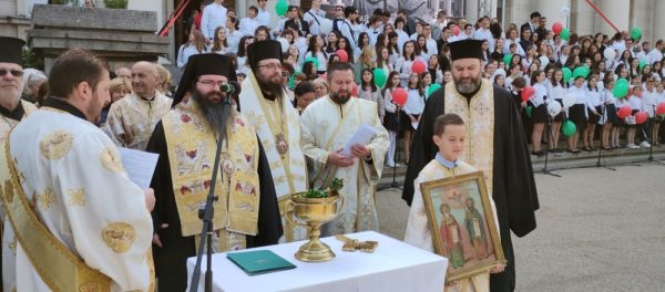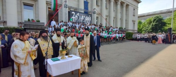 Στο τέλος της Θείας Λειτουργίας, ο Θεοφιλέστατος ανέγνωσε το μήνυμα του Μακαριωτάτου Πατριάρχη Βουλγαρίας κ.κ. Νεοφύτου. Ακολούθησε αγιασμός, που τελέστηκε μπροστά από την Εθνική Βιβλιοθήκη με την επωνυμία «Άγιοι Κύριλλος και Μεθόδιος», ενώ προηγήθηκε η καθιερωμένη λιτανεία της Ιεράς Εικόνος των Αγίων με «μπροστάρηδες» τους φοιτητές του Θεολογικού Σεμιναρίου της Σόφιας «Άγιος Ιωάννης της Ρίλας».Παρέστησαν ο Πρωθυπουργός Κίριλ Πέτκοφ, η Δημάρχος Σόφιας Γιορντάνκα Φαντακόβα, πολλοί πολιτικοί, ακαδημαϊκοί, παιδαγωγοί και πολιτιστικοί παράγοντες, πιστοί, μεγάλοι και μικροί.