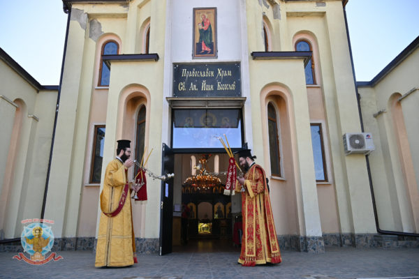 Αρχιερατική Θεία Λειτουργία στον Ιερό Ναό Αγίου Ιωάννη του Θεολόγου στη συνοικία Λέφσκι τελέστηκε την Κυριακή των Μυροφόρων, ημέρα που συνέπεσε να τιμάται η μνήμη του Αγίου Αποστόλου και Ευαγγελιστή Ιωάννη.