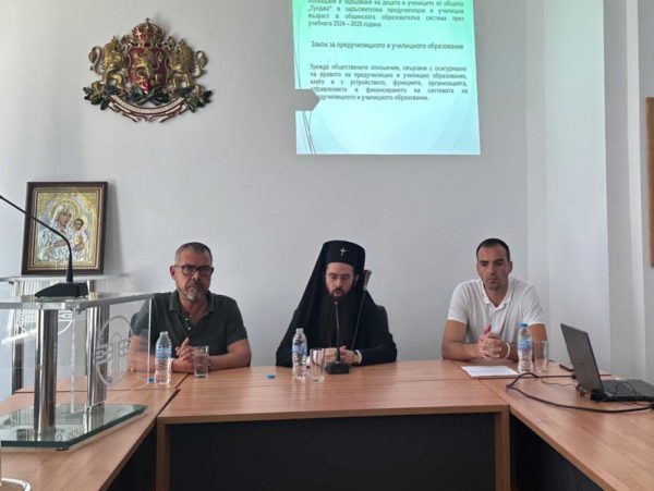 Μετά από πρόσκληση του δημάρχου του δήμου Tundzha, κ. Στάντσο Ντιμιτρόφ Στάβρεφ, πραγματοποιήθηκε συνάντηση εργασίας στο κτίριο του δήμου μεταξύ φορέων της ευρύτερης περιοχής, διευθυντών δημοτικών νηπιαγωγείων και σχολείων με τον Μητροπολίτη Σλίβεν κ. Αρσένιο.