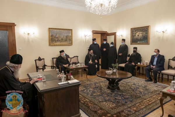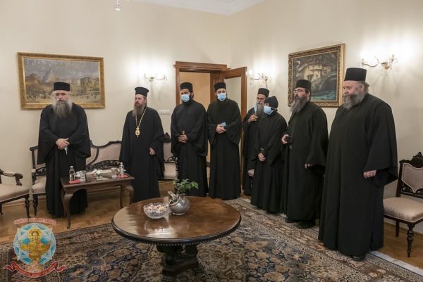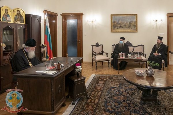 Συνοδεία μοναχών από το Άγιο Όρος με επικεφαλής τον Ηγούμενο της Ιεράς Μονής Εσφιγμένου, Αρχιμανδρίτη Βαρθολομαίο, επισκέφθηκε σήμερα, 23 Σεπτεμβρίου, τον Μακαριώτατο Πατριάρχη Βουλγαρίας κ.κ. Νεόφυτο στο γραφείο του στην Ιερά Μητρόπολη Σόφιας.