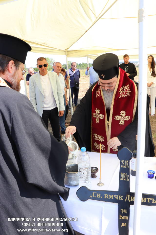 Την Παρασκευή 23 Ιουλίου 2021 ο Σεβ. Μητροπολίτης Βάρνας και Μεγάλης Πρεσλάβας κ. Ιωάννης τέλεσε την Ακολουθία του Αγιασμού και της Θεμελιώσεως για την ανέγερση ενός παρεκκλησίου αφιερωμένο στον Άγιο Δημήτριο στο κοιμητήριο της πόλης Βάλτσι Ντολ στη βορειοανατολική Βουλγαρία.