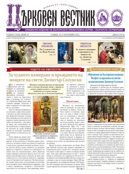 Στον Άγιο Δημήτριο είναι αφιερωμένο το 19ο τεύχος της Εφημερίδας της Βουλγάρικης Ορθόδοξης Εκκλησίας, που κυκλοφόρησε αυτό το μήνα. Συγκεκριμένα, το κύριο θέμα της έκδοσης αναφέρεται στην θαυματουργή εύρεση των θαυματουργών ιερών λειψάνων του Αγίου Δημητρίου εκ Θεσσαλονίκης.
