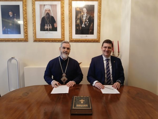 Ο Σεβασμιώτατος Μητροπολίτης Δυτικής και Κεντρικής Ευρώπης κ. Αντώνιος και ο Γενικός Διευθυντής της Εθνικής Ραδιοφωνίας της Βουλγαρίας Milen Mitev υπέγραψαν μνημόνιο συνεργασίας, στις 16 Ιανουαρίου, στην έδρα της Μητρόπολης στο Βερολίνο.