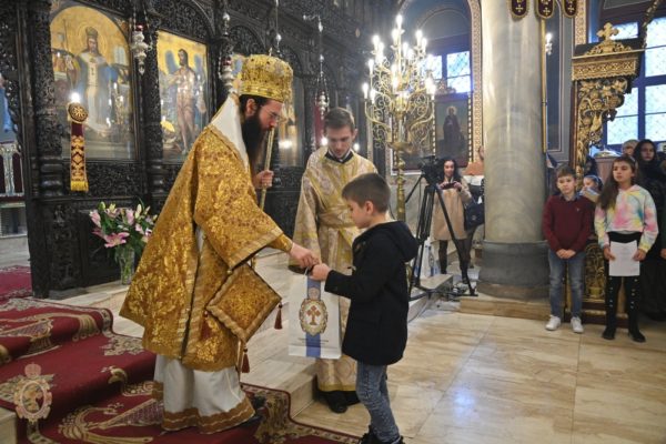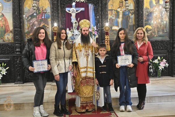 Ο Επίσκοπος κ. Αρσένιος καλωσόρισε τους μαθητές, τους δασκάλους και τους γονείς των παιδιών στον Μητροπολιτικό Ναό Αγίας Μεγαλομάρτυρος Μαρίνας στη Φιλιππούπολη, και απένειμε προσωπικά το πρώτο, δεύτερο και τρίτο βραβείο, καθώς και τιμητικούς επαίνους.