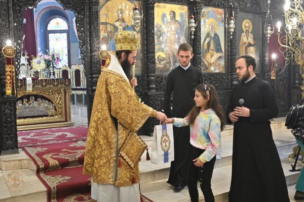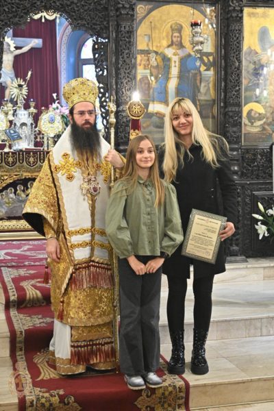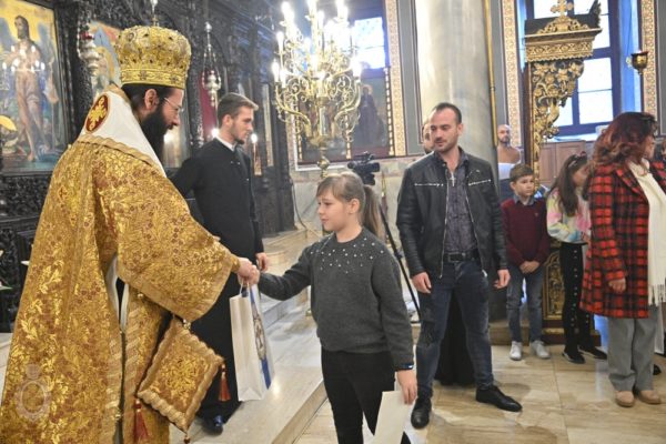 Ο Επίσκοπος κ. Αρσένιος καλωσόρισε τους μαθητές, τους δασκάλους και τους γονείς των παιδιών στον Μητροπολιτικό Ναό Αγίας Μεγαλομάρτυρος Μαρίνας στη Φιλιππούπολη, και απένειμε προσωπικά το πρώτο, δεύτερο και τρίτο βραβείο, καθώς και τιμητικούς επαίνους.