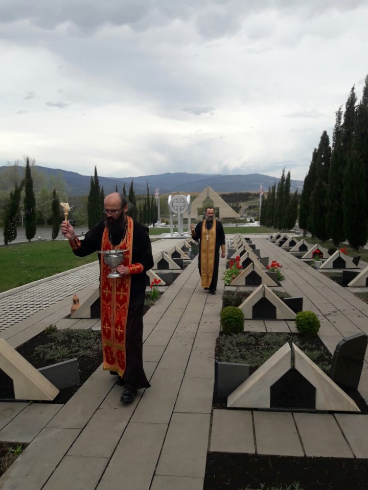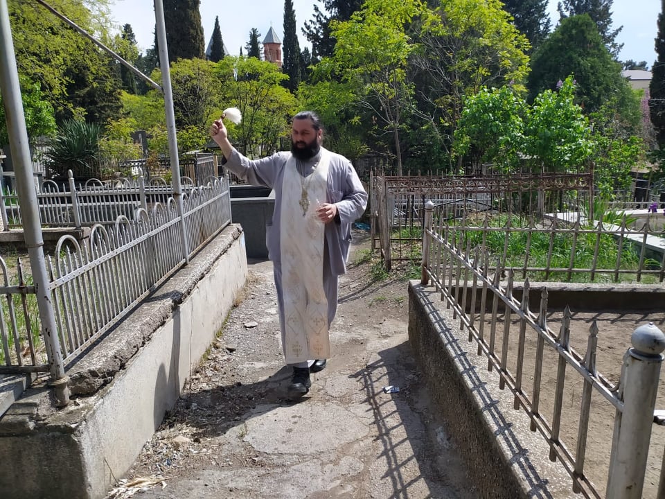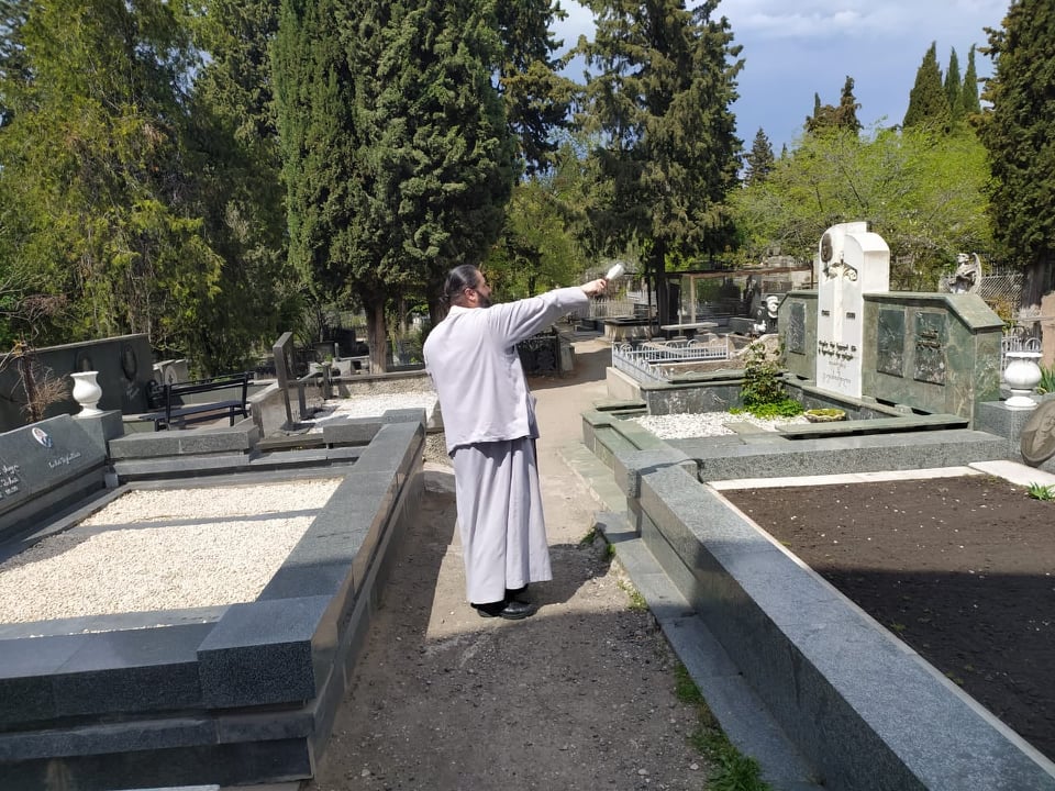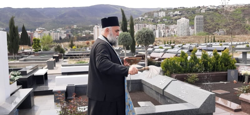 Με την ευλογία του Πατριάρχη Γεωργίας κ.κ. Ηλία Β΄, ιερείς ράντισαν με αγιασμό τα κοιμητήρια της Τιφλίδας και άλλων πόλεων της χώρας, την Δευτέρα του Πάσχα 20 Απριλίου 2020, όπως αναφέρει η σχετική ενημέρωση του Πατριαρχείου.