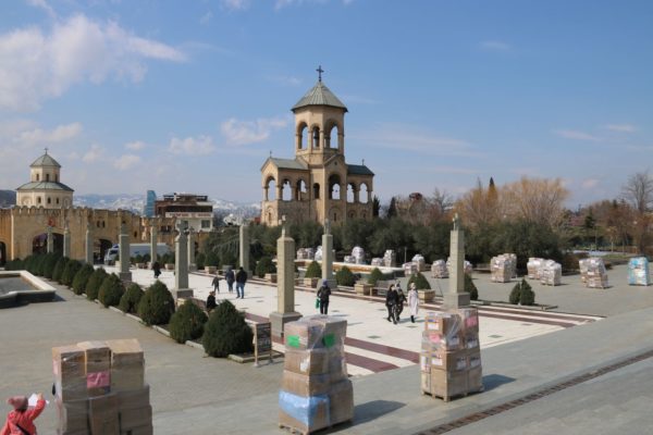 Ανθρωπιστική βοήθεια στον δοκιμαζόμενο λαό της Ουκρανίας εστάλη για ακόμα μία φορά από τον Καθεδρικό Ναό Αγίας Τριάδας στην Τυφλίδα, χθες, 27 Μαρτίου, μετά την Θεία Λειτουργία της Κυριακής της Σταυροπροσκυνήσεως.