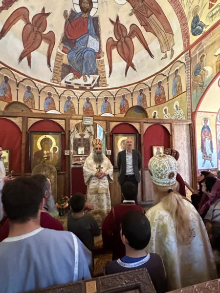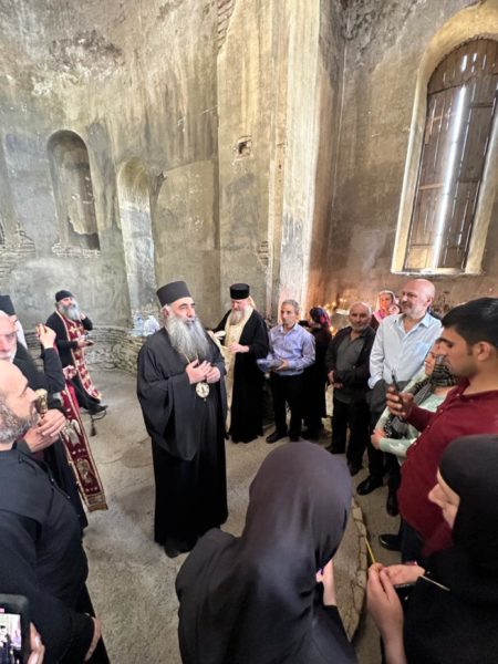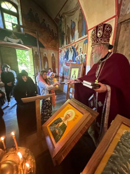 Ο Μητροπολίτης κ. Θεόδωρος μετέφερε στο τοπικό εκκλησίασμα την ευλογία του Μακαριωτάτου Καθολικού Πατριάρχη Γεωργίας κ.κ. Ηλία Β’ και εξέφρασε ευχές για την εορτή του Αγίου Γεωργίου.