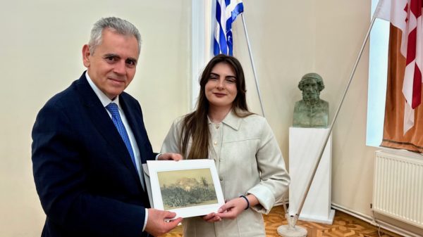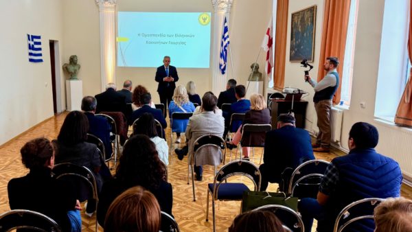 Προηγήθηκε ενημέρωση για τη δράση των 18 ελληνικών συλλόγων αλλά και τη κατάσταση που βρίσκεται σήμερα ο ελληνισμός της Γεωργίας από την πρόεδρο της Ομοσπονδίας των Ελληνικών Κοινοτήτων της Γεωργίας κ. Ευγενία Κοτανίδου, την πρόεδρο του Συλλόγου Ελληνικής Νεολαίας της Τιφλίδας κ. Φωτεινή Πορφυρίδη, καθώς και την πρέσβη της Ελλάδας στη Τιφλίδα κ. Μαρία Θεοδώρου. Στην επίσκεψη συμμετείχαν, επίσης, οι βουλευτές από τη Βουλή των Αντιπροσώπων της Κύπρου κ.κ. Ηλίας Μυριάνθους και Αλέκος Τρυφωνίδης.
