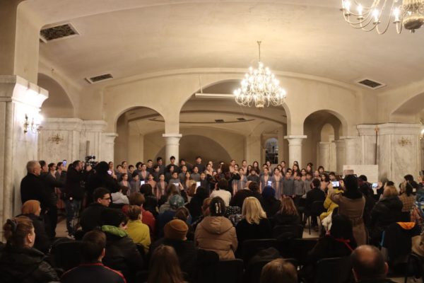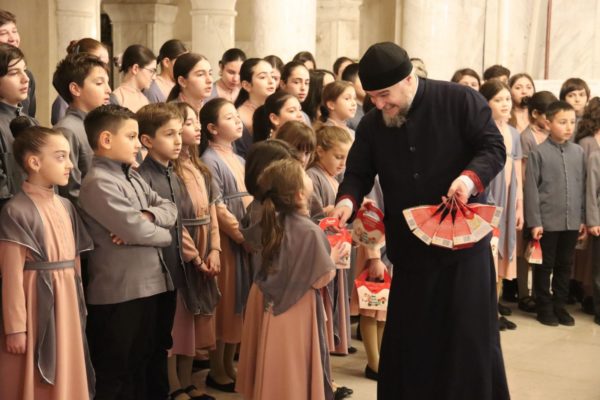 Παιδιά τα οποία έλαβαν το Άγιο Βάπτισμα κατά τη διάρκεια ομαδικών βαπτίσεων νηπίων που πραγματοποιούνται τέσσερις φορές το χρόνο με την ευλογία του Πατριάρχη Γεωργίας κ.κ. Ηλίας, έψαλλαν τα Χριστουγεννιάτικα κάλαντα, στις 27 Δεκεμβρίου, στο κέντρο νεότητας του Καθεδρικού Ναού της Αγίας Τριάδας στην πρωτεύουσα της Γεωργίας, Τιφλίδα.