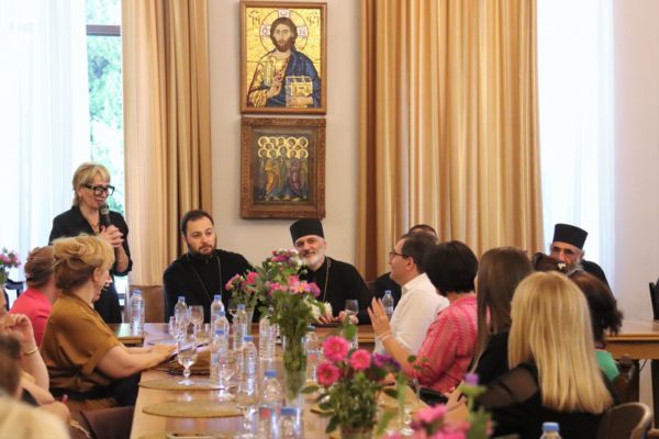 Στη δεξίωση παρευρέθηκαν επίσης ο κ. Beka Odisharia, Βουλευτής της Γεωργίας, Πρόεδρος της Επιτροπής Υποθέσεων Διασποράς και Καυκάσου, και ο Dean Andria Jaghmaidze, Επικεφαλής της Υπηρεσίας Σχέσεων με τη Διασπορά του Πατριαρχείου Γεωργίας.