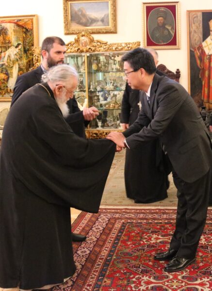 Με τον Πρέσβη της Λαϊκής Δημοκρατίας της Κίνας στη Τιφλίδα κ. Τζου Ιενκί συναντήθηκε χθες ο Πατριάρχης Γεωργίας κ.κ. Ηλίας. Στη συνάντηση παραβρέθηκε επίσης και ο επικεφαλής του Τμήματος Εξωτερικών υποθέσεων του Πατριαρχείου Σεβ. Μητροπολίτης Ζουγκτίντι και Τσαϊτσι κ. Γεράσιμος.