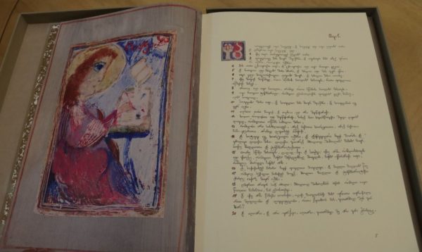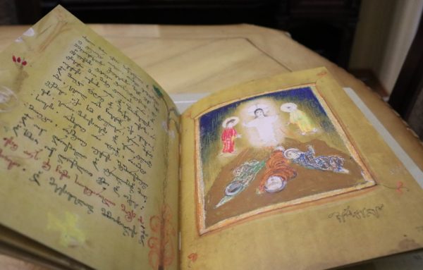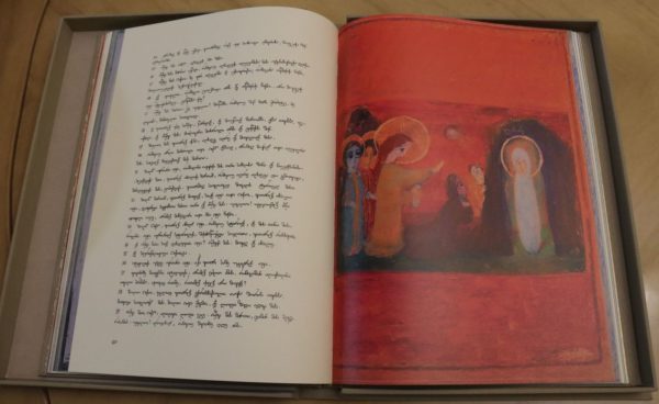 Όπως είναι γνωστό, το ίδρυμα «Atinati», που διακρίνεται για την παρουσίαση έργων Γεωργιανών καλλιτεχνών, διοργάνωσε πρόσφατα έκθεση ζωγραφικής του Irakli Farjiani, η οποία έτυχε μεγάλου ενδιαφέροντος από το γεωργιανό κοινό. Στο πλαίσιο αυτό η κόρη του καλλιτέχνη επισκέφθηκε τον Μακαριώτατο μαζί με τον διευθυντή του ιδρύματος και του παρέδωσε αντίγραφα εικονογραφημένων χειρογράφων από το Κατά Μάρκος και το Κατά Ιωάννης ευαγγέλιο τα οποία είχε φιλοτεχνήσει ο πατέρας της.