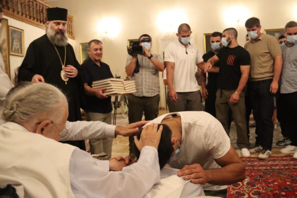 Ο Πατριάρχης Γεωργίας κ.κ. Ηλίας μαζί με τον Μητροπολίτη Σενάκι και Τσχορότσκου κ. Σιό , “τοποτηρητής” και “σύνθρονος” του Πατριάρχη Γεωργίας έδωσαν την ευλογία τους στους παλαιστές που θα συμμετάσχουν στους Ολυμπιακούς Αγώνες.