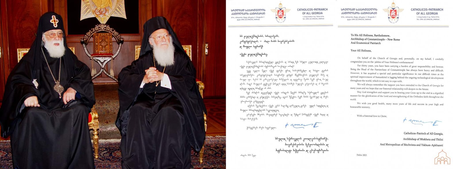 Με την ευκαιρία της τριακοστής επετείου της Ενθρόνισης του, ο Μακαριώτατος Πατριάρχης Γεωργίας κ.κ. Ηλίας Β’ απέστειλε επιστολή προς τον Παναγιώτατο εκφράζοντας τα θερμά συγχαρητήρια του εκ μέρους της Εκκλησίας της Γεωργίας και του ιδίου προσωπικά.