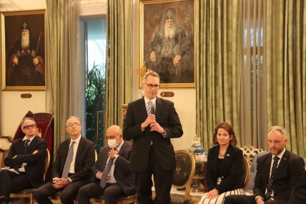 Ο Μακαριώτατος ευχαρίστησε τους προσκεκλημένους για την επίσκεψη και για τη συνεργασία τους με τη χώρα, τους ευχήθηκε για τα Χριστούγεννα και την Πρωτοχρονιά που έρχονται.