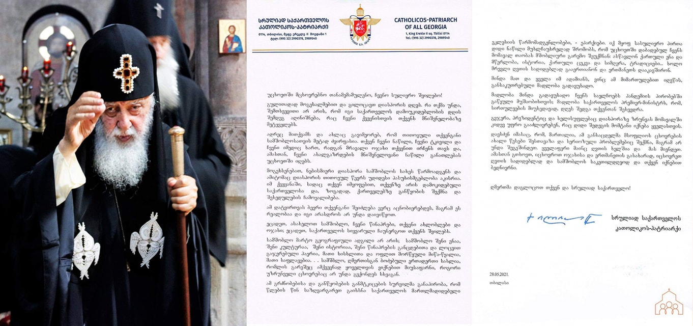 “Η πατρίδα δεν είναι απλώς μια γεωγραφική θέση. Η πατρίδα είναι η γλώσσα σας, ο πολιτισμός σας, η ιστορία σας, ο αέρας γεμάτος με τα συναισθήματα και τις προσευχές των προγόνων σας, η γη που ποτίστηκε με το αίμα τους, τον ιδρώτα τους και τους τάφους τους. H πατρίδα είναι το μοναδικό Θεόσταλτο σπίτι, δίχως το οποίο θα είμαστε πάντα άστεγοι σε αυτόν τον κόσμο, ανεξάρτητα από το πόσο ασφαλής είναι η ζωή που μπορεί να έχουμε αλλού”, τονίζει, μεταξύ άλλων, ο Μακαριώτατος Πατριάρχης Γεωργίας κ.κ. Ηλίας Β’ στο μήνυμα του για την 28η Μαΐου, ημέρα που ήταν αφιερωμένη στην διασπορά της Γεωργίας.