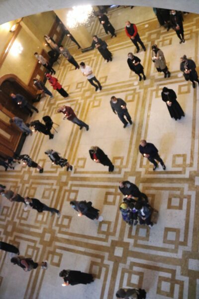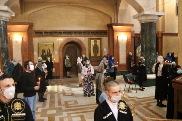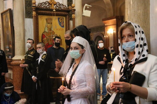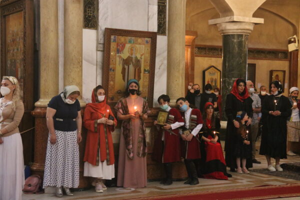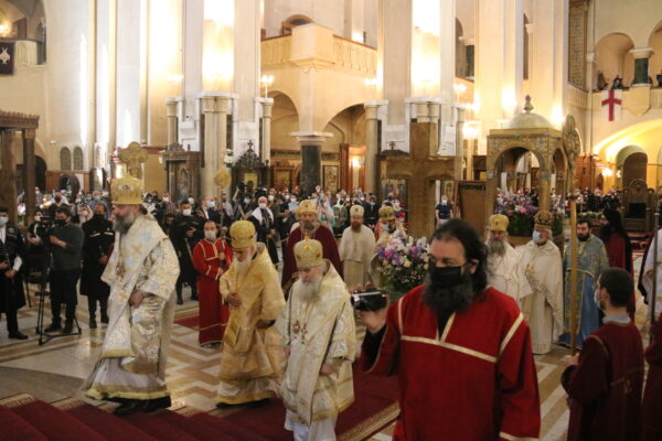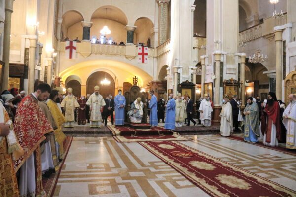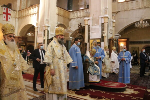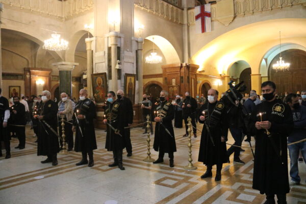 Μετά το πέρας της Θείας Λειτουργίας και με την ευλογία του Μακαριωτάτου, κληρικοί με αφετηρία τον Καθεδρικό Ναό, ράντισαν με αγιασμό τους δρόμους της Τιφλίδας.