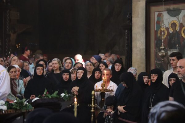 Σήμερα το πρωί τελέστηκε πολυαρχιερατική Θεία Λειτουργία, με τη συμμετοχή κληρικών του Πατριαρχείου. Στη Θεία Λειτουργία παρέστη και ο άγων τα ονομαστήριά του Προκαθήμενος της εν Γεωργία Ορθοδόξου Εκκλησίας ο οποίος ευχαρίστησε κλήρο και λαό για τις ευχές που με αφορμή την σημερινή ημέρα.