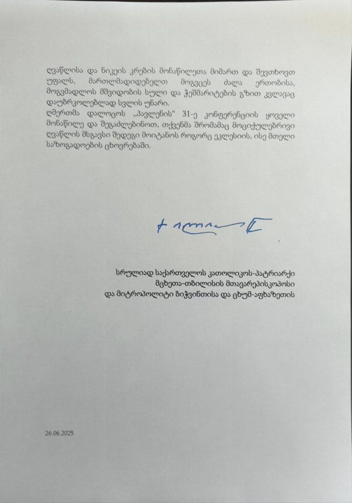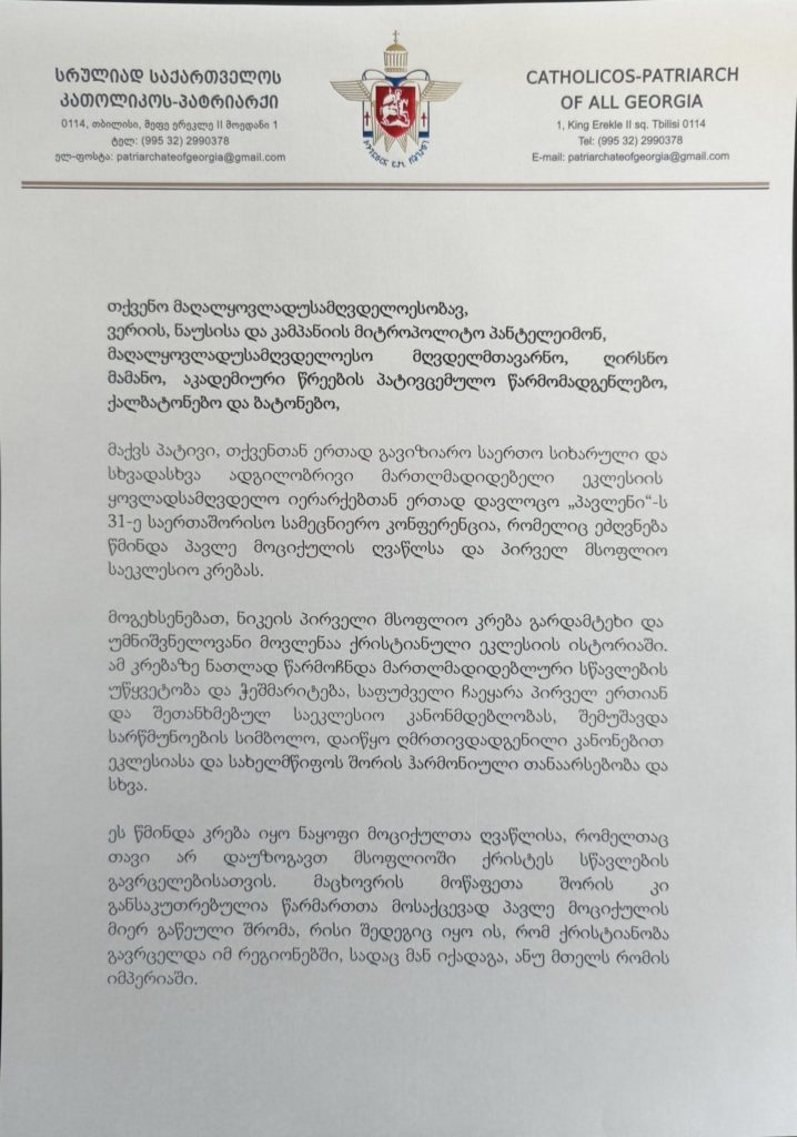 Το μήνυμα του Πατριάρχη Γεωργίας στο 31ο Διεθνές Επιστημονικό Συνέδριο των ΛΑ’ Παυλείων