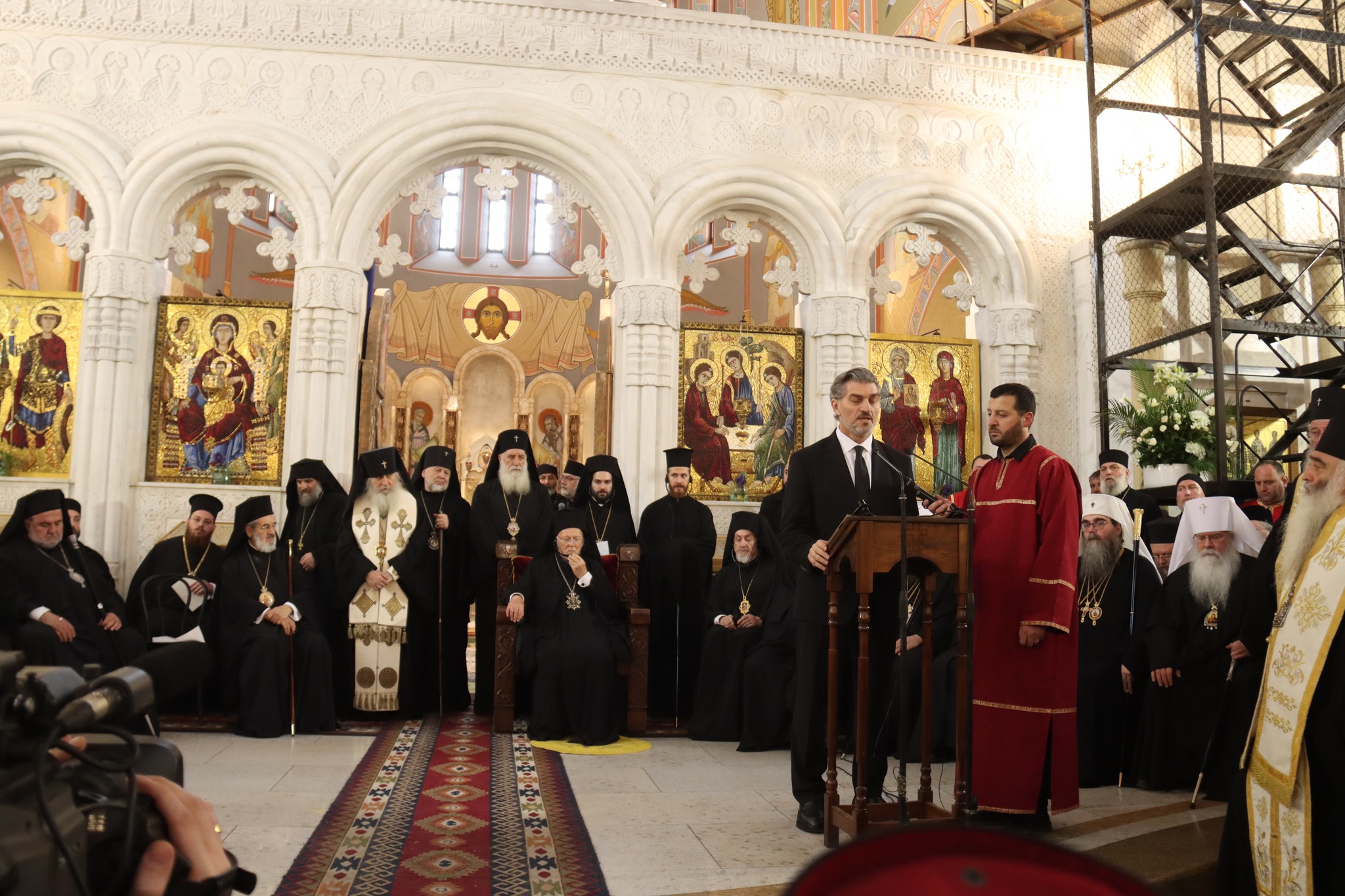 Αμέσως μετά την Εξόδιο Ακολουθία τους Προκαθημένους και Αντιπροσώπους των Ορθοδόξων Εκκλησιών καλωσόρισε ο Τοποτηρητής του Θρόνου, Μητροπολίτης Σενάκι κ. Σιό.