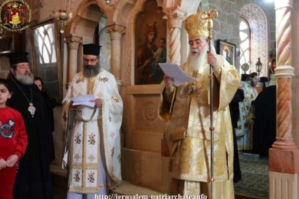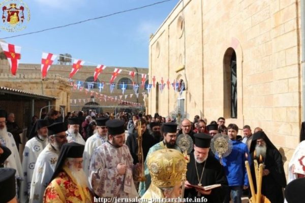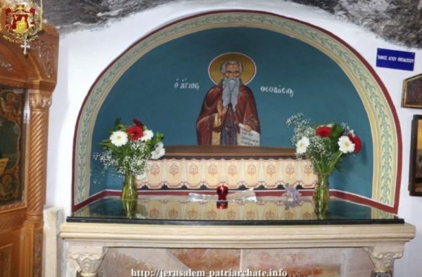 Εἰς τήν Μονήν ταύτην ἑωρτάσθη ἡ μνήμη τοῦ Ἁγίου Θεοδοσίου δι’ Ἑσπερινοῦ ἀφ’ ἑσπέρας, τοῦ ὁποίου προεξῆρξεν ὁ Σεβασμιώτατος Ἀρχιεπίσκοπος Σεβαστείας κ. Θεοδόσιος καί διά θείας λειτουργίας τήν πρωΐαν, τῆς ὁποίας προεξῆρξεν ἡ Α. Θειοτάτη Μακαριότης καί Πατριάρχης Ἱεροσολύμων κ.κ. Θεόφιλος, συλλειτουργούντων τοῦ Σεβασμιωτάτου Μητροπολίτου Βόστρων κ. Τιμοθέου, τῶν Σεβασμιωτάτων Ἀρχιεπισκόπων Κωνσταντίνης κ. Ἀριστάρχου, Θαβωρίου κ. Μεθοδίου, Ἰορδάνου κ. Θεοφυλάκτου καί Ἁγιοταφιτῶν Ἱερομονάχων, Ἀραβόφωνων Πρεσβυτέρων, τοῦ Ἀρχιδιακόνου Μάρκου καί ἄλλων διακόνων, ψάλλοντος τοῦ Πρωτοψάλτου τοῦ Πανιέρου Ναοῦ τῆς Ἀναστάσεως κ. Κωνσταντίνου Σπυροπούλου καί μοναχῶν ἐκ τῆς Ἱερᾶς Λαύρας τοῦ Ὁσίου Σάββα, μετέχοντος ἀθρόου ἐκκλησιάσματος ἐκ τῆς γειτνιαζούσης πόλεως τοῦ Χωρίου τῶν Ποιμένων κυρίως, ἀλλά καί προσκυνητῶν.