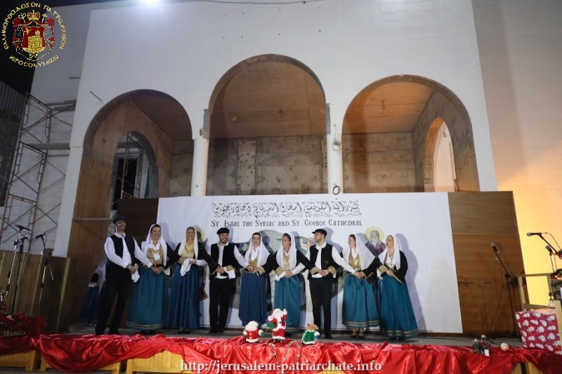 Τό καλλιτεχνικόν πρόγραμμα περιελάμβανε ἐπίκαιρα χριστουγεννιάτικα ᾄσματα ἀπό τήν Ρωσσόφωνον Χορωδίαν, Russian Speaking Choir “Kamerton”, τήν Μικτήν Χορωδίαν τῆς Ρωμαιοκαθολικῆς Ἐκκλησίας, τά παιδιά τοῦ Ὀρθοδόξου Κατηχητικοῦ ὑπό τόν χορευτικόν Σύλλογον τῶν Ἑλλήνων τοῦ Qatar, τά μέλη τοῦ ὁποίου μέ ἑλληνικάς ἐνδυμασίας ἐχόρεψαν παραδοσιακούς χορούς.