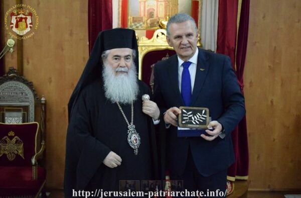 Ὁ Μακαριώτατος ἐνημέρωσε τά μέλη τῆς Ἀποστολῆς ἐπί τῶν προσπαθειῶν τοῦ Πατριαρχείου Ἱεροσολύμων διά τήν διατήρησιν τῆς Ρωμαιορθοδόξου ταυτότητος τοῦ ποιμνίου αὐτοῦ καί διά τήν βοήθειαν αὐτοῦ ἐν συνεργασίᾳ μετά τῶν ἁρμοδίων κυβερνητικῶν παραγόντων, ὡς καί διά τήν ἀνακαίνισιν τῆς ἱερᾶς Μονῆς τοῦ Τιμίου Προδρόμου παρά τόν Ἰορδάνην ποταμόν, καθισταμένην καί πάλιν προσκυνηματικόν κέντρον, ἰδίᾳ κατά τήν κατ’ ἔτος ἑορτήν τῶν Θεοφανείων.