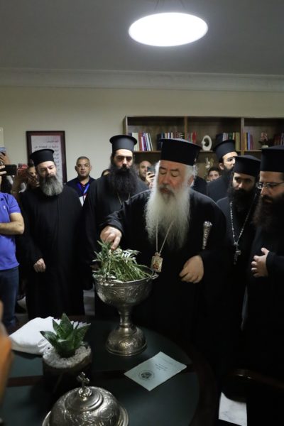 Μετά το πέρας της συνάντησης, όλοι κατευθύνθηκαν προς την έδρα της Γενικής Γραμματείας, όπου ο Σεβασμιώτατος τέλεσε Αγιασμό εκφράζοντας την ελπίδα ότι η έδρα θα αποτελέσει κέντρο ανάπτυξης πνευματικής ζωής και διάδοσης των αξιών της αγάπης και της ειρήνης.
