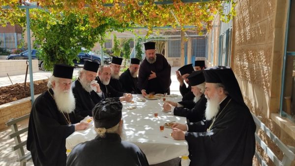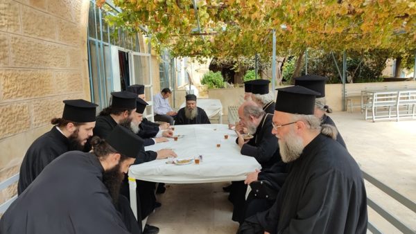 ΑΓΙΟΙ ΤΟΠΟΙ – Εόρτασε την Κυριακή 17 Οκτωβρίου, ο Γέροντας Ιερόθεος, Καθηγούμενος της Ιεράς Μονής του Αββά Θεοδοσίου του Κοινοβιάρχου, σύμφωνα με το ιεροσολυμίτικο (Ιουλιανό) ημερολόγιο. Ο εορτάζων τέλεσε τη Θεία Λειτουργία πολύ νωρίς το πρωί μόνο με μοναχές και τους διακονητές του μοναστηριού του Αγίου Θεοδοσίου.