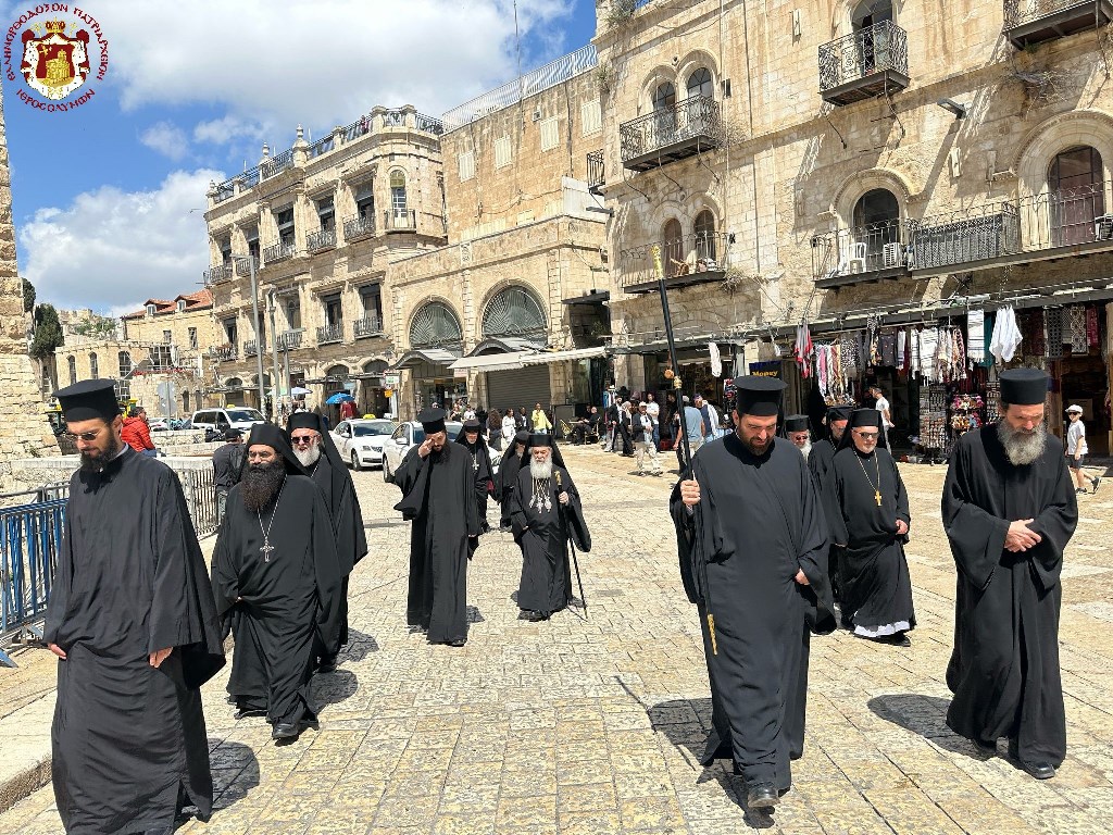 Την Παρασκευήν, 12/25 Απριλίου 2025, έλαβε χώρα η επίσκεψη της Αγιοταφιτικής Αδελφότητος στο Αρμενικό Πατριαρχείο στα Ιεροσόλυμα επί τη εορτή του Πάσχα ως ανταπόδοση της επισκέψεως αυτών στο Πατριαρχείο. Εκεί τον Μακαριώτατο κ.κ. Θεόφιλο και την Αγιοταφιτική Συνοδεία Αυτού δέχθηκε ενθέρμως ο Πατριάρχης Nourhan Manougian μετά της Αδελφότητος των Αρμενίων. Ακολούθησαν οι Πασχάλιες προσφωνήσεις και το εόρτιο κέρασμα.