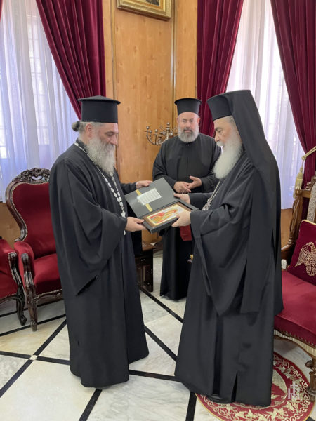 Την Πέμπτη 22 Σεπτεμβρίου 2022, ο Επίσκοπος επισκέφθηκε τον Μακαριώτατο Πατριάρχη Ιεροσολύμων κ.κ. Θεόφιλο, στον οποίο μετέφερε τον αδελφικό χαιρετισμό του Αρχιεπισκόπου Αχρίδος κ. Στεφάνου, με την παράκληση να ευλογήσει την συμμετοχή των προσκυνητών στις λειτουργικές ιεροπραξίες στους Αγίους Τόπους.