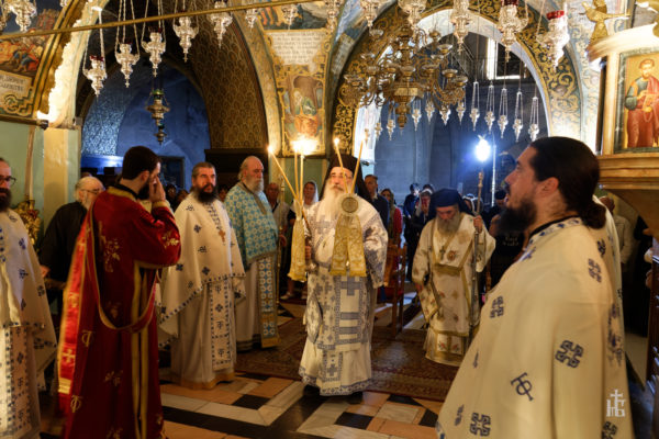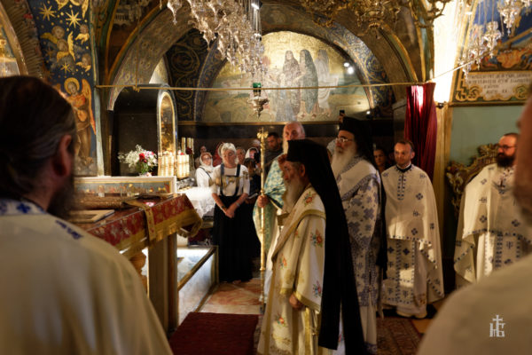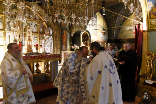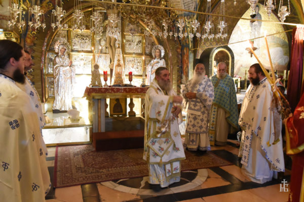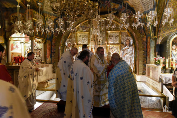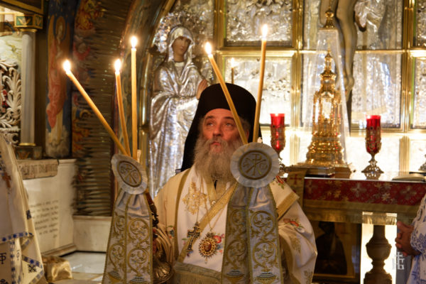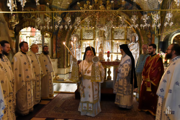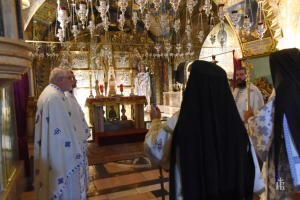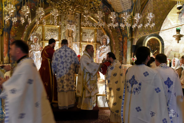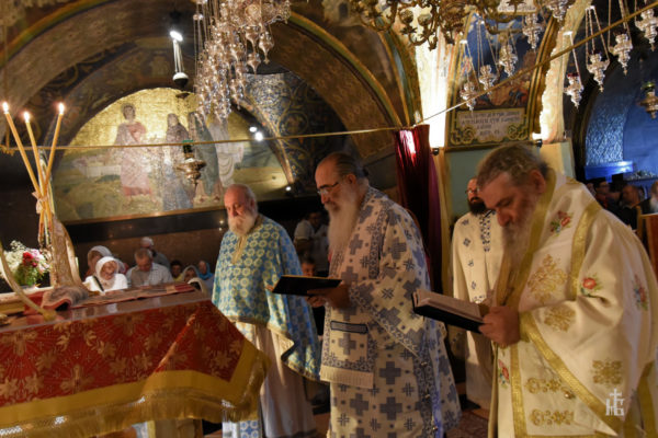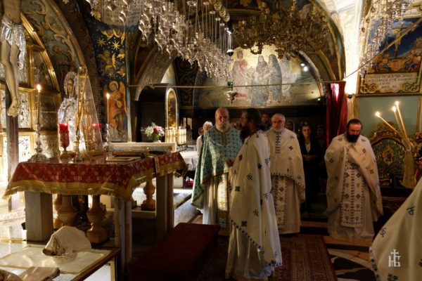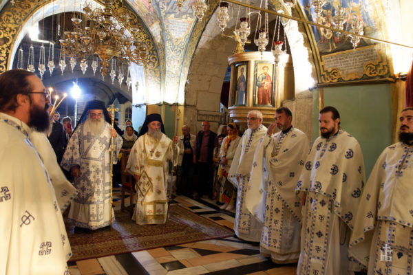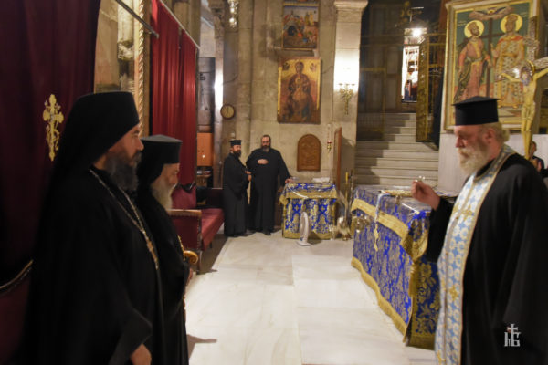 Στο πλαίσιο αυτό, με την ευλογία του Μακαριωτάτου ο Επίσκοπος Αντανίας κ. Παρθένιος συλλειτούργησε με τον Σεβασμιώτατο Αρχιεπίσκοπο Μαδάβων κ. Αριστόβουλο (Πατριαρχείο Ιεροσολύμων) στη Θεία Λειτουργία που τελέστηκε στο Ιερό Παρεκκλήσιο του Φρικτού Γολγοθά εντός του Πανίερου Ναού της Αναστάσεως, πλαισιωμένοι από αδελφούς της Ιεράς Μονής Μπίγκορσκι.