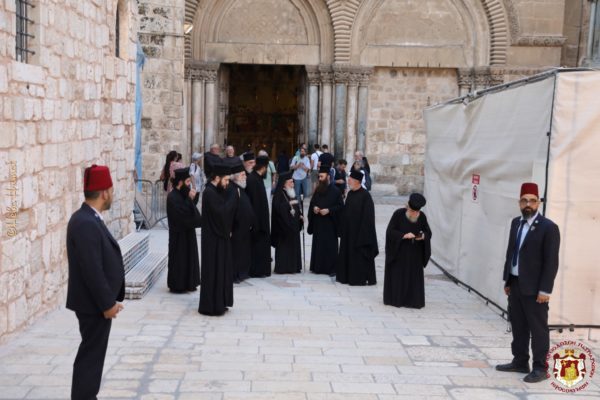 Αντιπροσωπεία του Πατριαρχείου Ιεροσολύμων, υπό τον Μακαριώτατο Πατριάρχη Θεόφιλο Γ΄, επισκέφθηκε χθες τον Ιερό Ναό της Αναστάσεως μαζί με τον επικεφαλής του Τάγματος των Φραγκισκανών και τον Αρχιεπίσκοπο Sevan Gharibian εκ μέρους των Αρμενίων.
